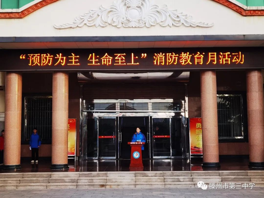 2023年11月9日是第32个全国消防日,今年消防日的主题是“预防为主,生命至上”。滕州市第三中学根据学校实际,制定了“119消防宣传月”活动方案,开展了“十个一”活动。