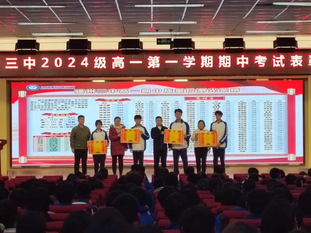 在老师们辛勤付出和同学们的刻苦努力下,我校高一年级在全市期中质量检测中取得了优异成绩,涌现出了班风正、学风浓的优胜班级和勤奋好学、积极向上的优秀学生。为表彰先进,激励后进,11月24日晚高一年级召开了质量检测表彰会。
