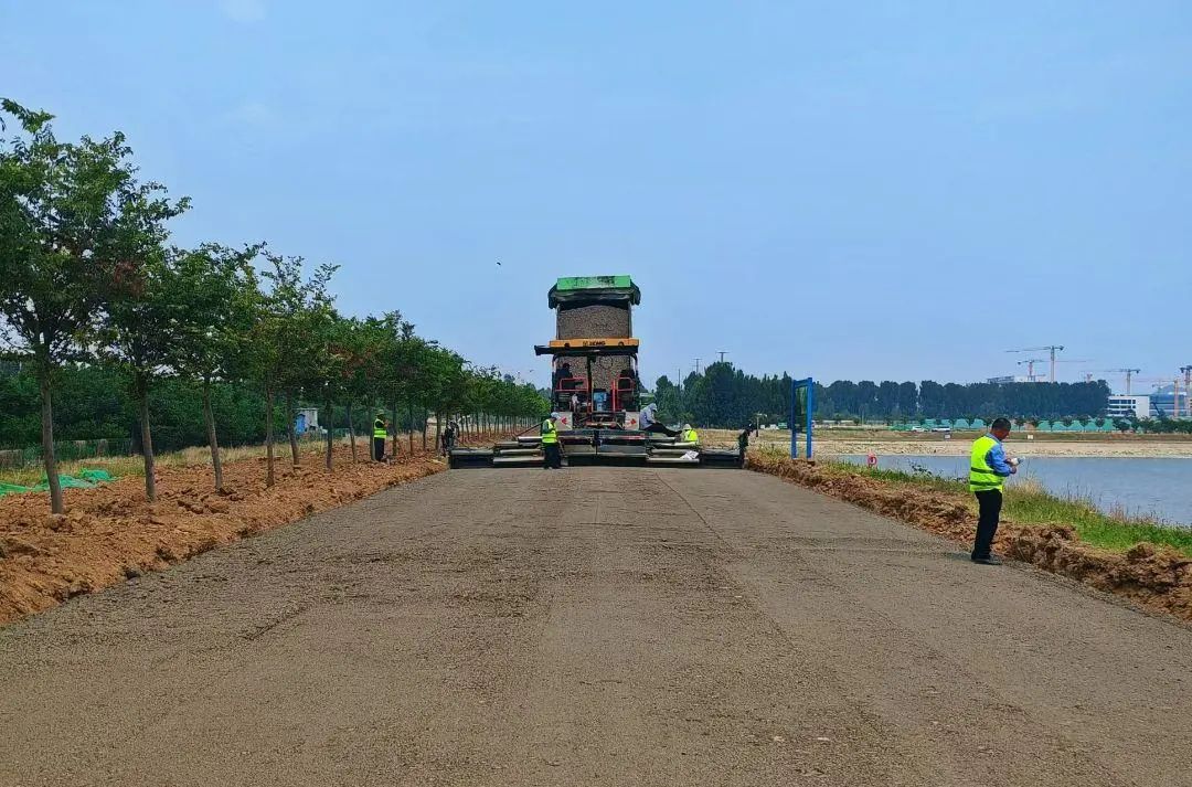 为确保工程能够按时、高质量交付,交发集团通大公司施工团队放弃休假,掀起施工热潮。公司领导驻点指挥,业务骨干全线上阵,施工、机械、拌合站各部室密切配合,争分夺秒、连轴推进,顺利完成3.2公里沥青面层摊铺及标线施工任务。随后,所有人员、设备又快速转移至东沙河墨子湖环湖路建设现场,开展预拌碎石结构层摊铺。