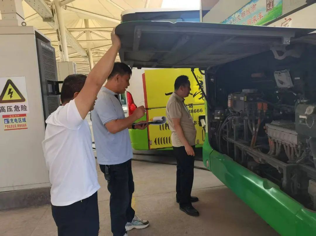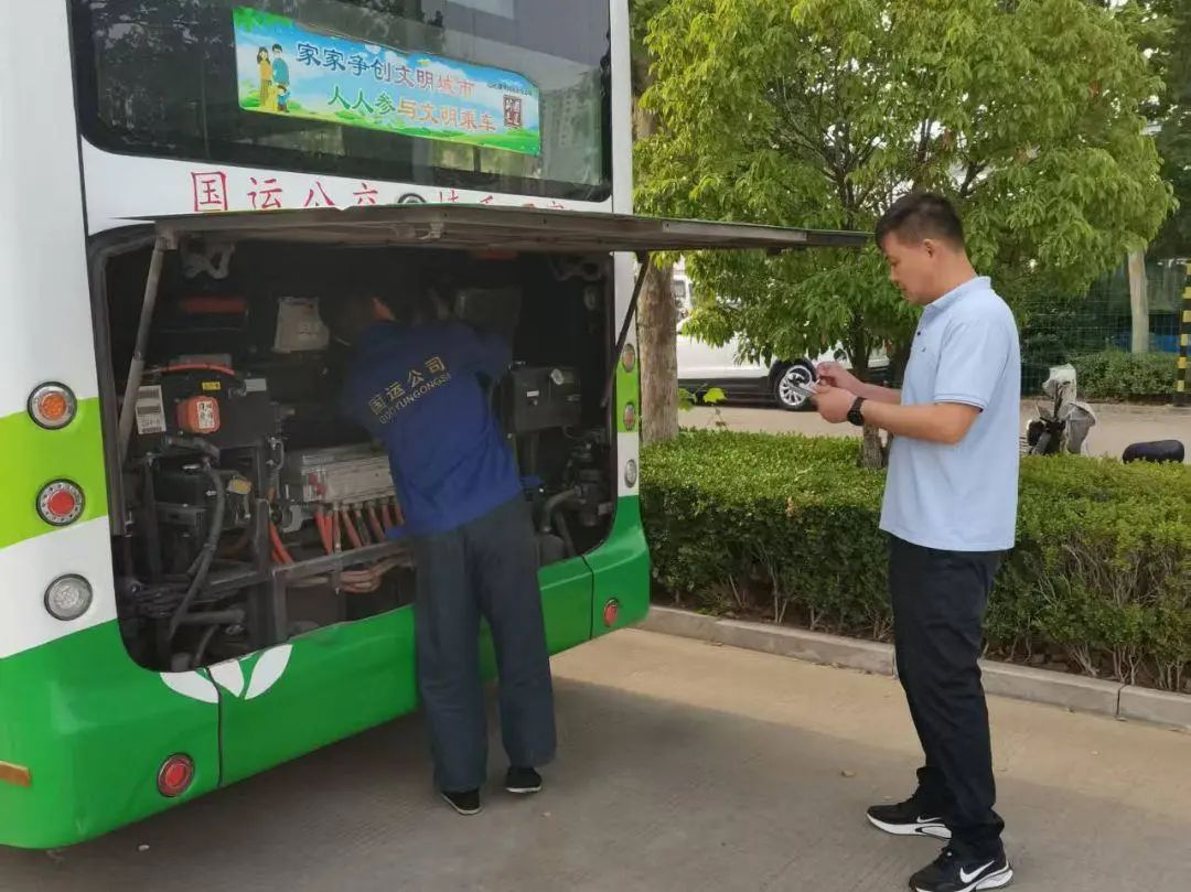 检查小组重点对运营车辆的制动系统、转向系统、轮胎磨损、灯光照明、消防器材及车载监控设备进行逐项排查,确保车辆技术状况良好,杜绝“带病上路”。细致检查了场站区域消防设施、充电桩运行状态、排水系统及安全警示标识,充电桩设备电路,同时对办公区域用电安全、消防通道等进行了检查,及时消除潜在风险。