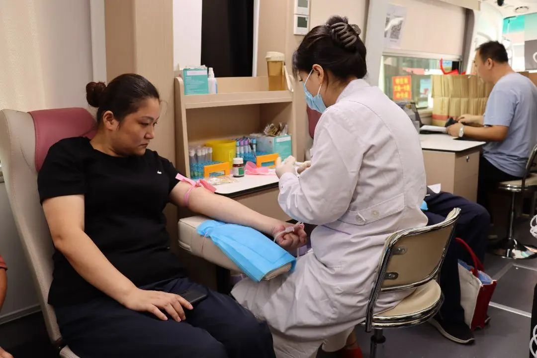 在市血站工作人员的指导下,大家严格遵循登记填报、血压测量、血液初检、静脉采血等规范步骤,挽起衣袖,让热血流入采血袋,传递着温暖与希望。
