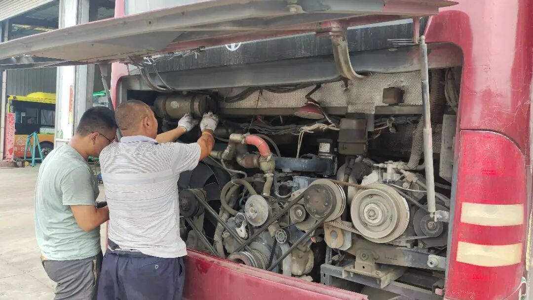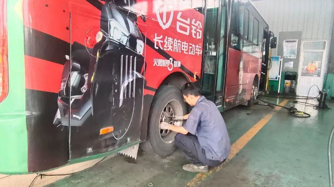 维修人员俯身细致排查,对公交车发动机、制动系统等关键部件全面检修,杜绝“带病车”上路,为每一趟行程筑牢安全屏障。充电员严格遵循安全规范,专注完成车辆充电、巡检工作,确保纯电动公交满电上路,为节日出行提供稳定动力支持。
