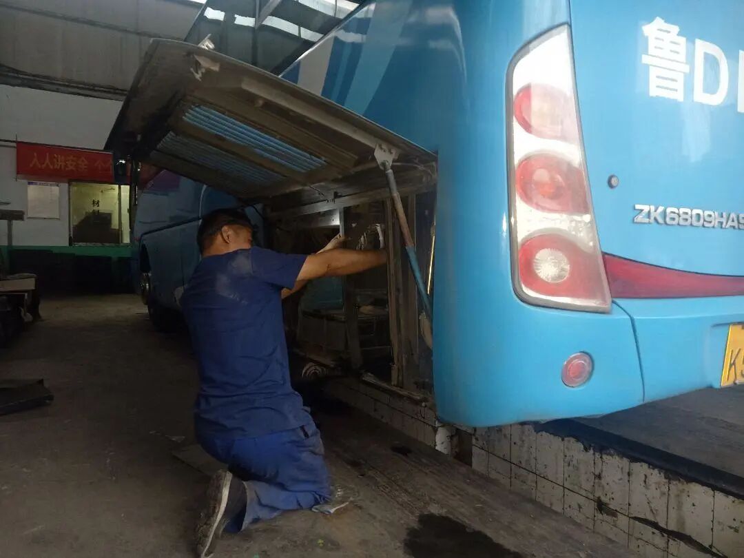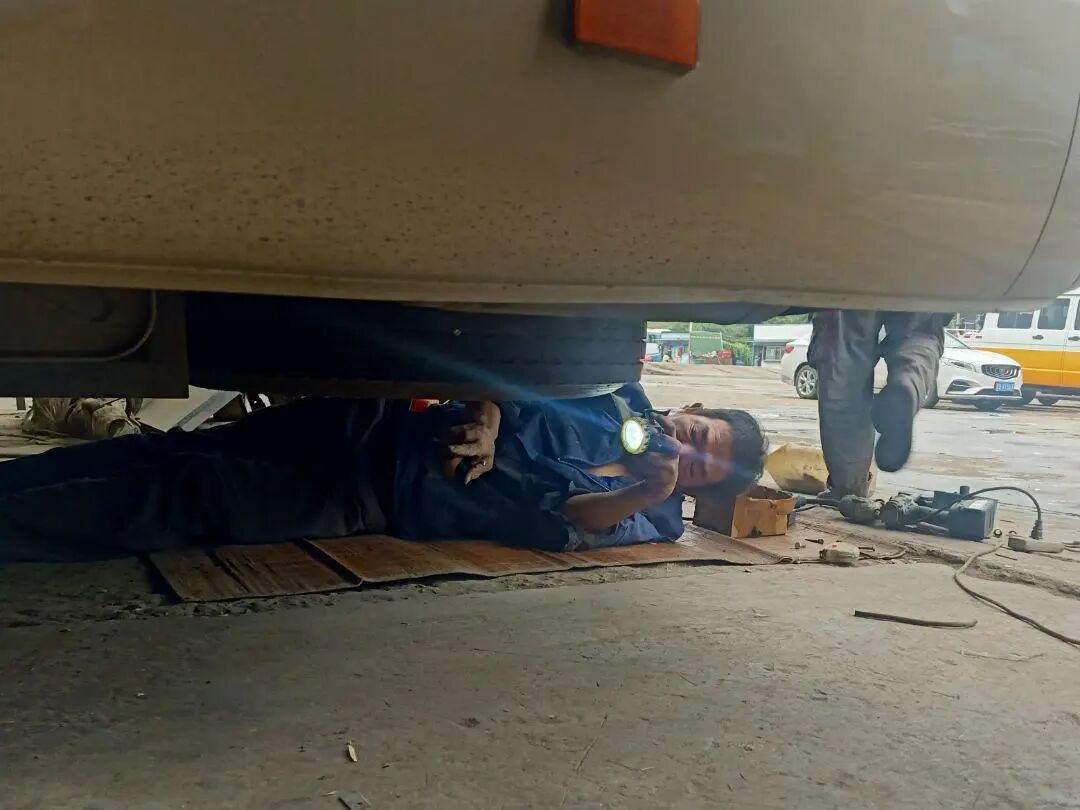 车辆维修人员钻进狭窄的地沟,细致排查各类设施设备隐患、及时消除潜在风险,为车辆平安运营提供持续保障。