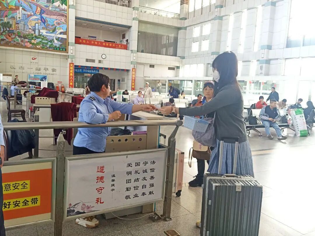 站务人员严格执行“三不进站、六不出站”规定,全面加强“三品”检查,严禁旅客携带违禁物品进站乘车。