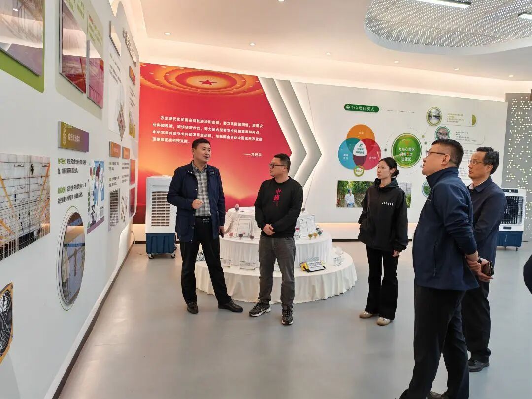 在智慧农业设施区域,考察组现场察看了现代农业技术具体应用情况,并就项目整体规划、技术集成与运营模式进行了细致了解。在项目规划展示区,考察组认真听取了关于园区整体布局、产业融合发展思路以及服务乡村振兴战略的具体举措与成效的介绍,并就资源共享、模式创新、产业协同等内容进行了深入沟通。