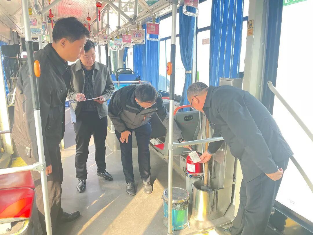 各检查组结合冬季气候特点,通过实地检查、现场询问等方式,对各单位的消防设施设备、标语标识、充电桩、运营车辆等重点部位的运行状况和安全防护措施,开展全覆盖、无盲区的拉网式排查,同时仔细查阅各单位冬季恶劣天气应对预案、突发事件应急预案、安全会议记录等内页资料,并现场督导运营车辆车容车貌、驾驶员“一日三检”执行情况及安全驾驶状态。