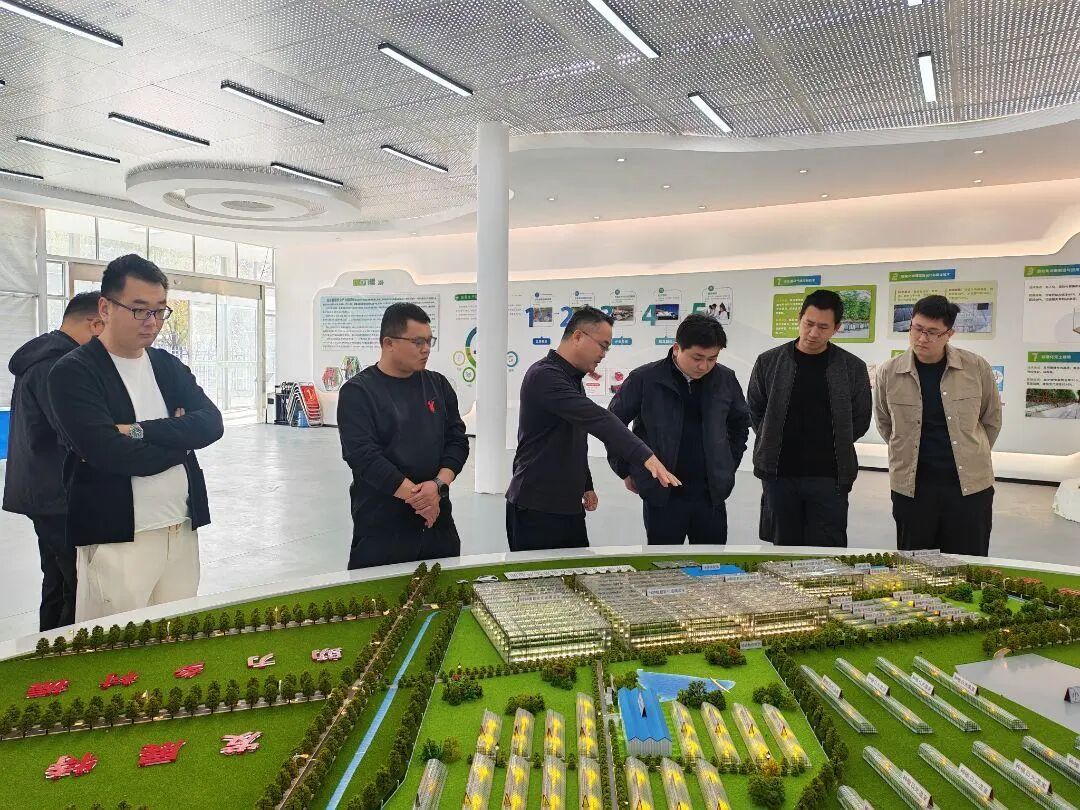 在产业园项目现场,考察组一行听取了集团关于园区规划建设、技术应用及运营管理等情况的介绍,实地查看了园区核心功能区域及智能农业设施运行情况,详细了解项目的核心理念、整体规划及智能化先进技术的运用,并就智慧农业技术创新、产业链延伸及未来合作方向展开深入交流。