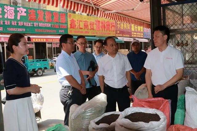 在嘉誉国际商贸城,王俊利一行每到一处都仔细查看市场各类干杂海货、调味品等产品,听取市场相关负责人关于嘉誉专业市场情况介绍,并与市场经营商户深入交流,询问产品种类、经营销售状况,详细了解了专业市场现状、整体规划布局、商户入驻、产品贸易流通、市场运营管理等有关情况,对嘉誉市场的专业化以及在干杂海货产品销售上所做出的成绩表示充分肯定。王俊利一行还来到保税仓库区域实地考察,认真听取相关负责人关于保税仓库发展规划、功能布局、配套建设等情况介绍,并就进一步加强沟通合作事宜进行了洽谈交流。