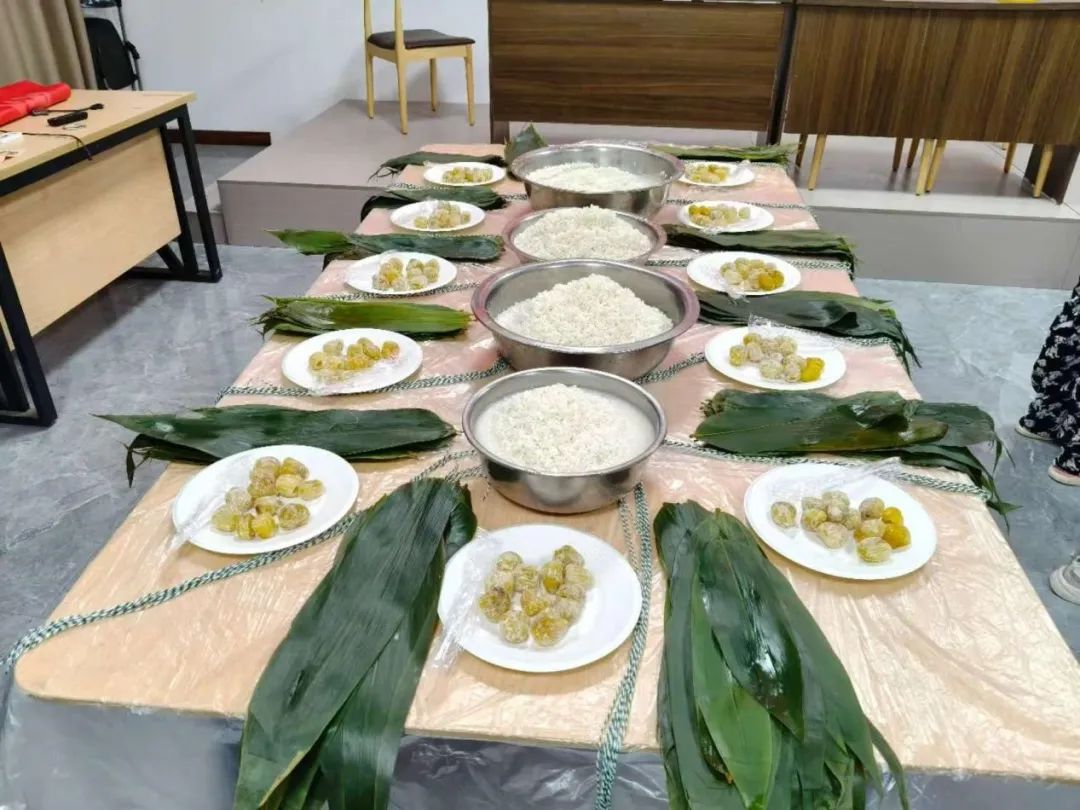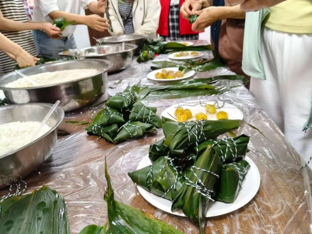 在包粽子区域,社区工作人员早早备好了糯米、粽叶、蜜枣、棉线等新鲜食材。居民们围在一起,互相交流包粽子的技巧,现场气氛热烈。无论是经验丰富的“老手”,还是初次尝试的“新手”,都沉浸在包粽子的乐趣中。不一会儿,一个个形态饱满、香气四溢的粽子便摆满了桌面。活动结束后,这些饱含着心意的粽子将免费发放给参与活动的居民,让大家把这份浓浓的端午情意带回家与家人分享。