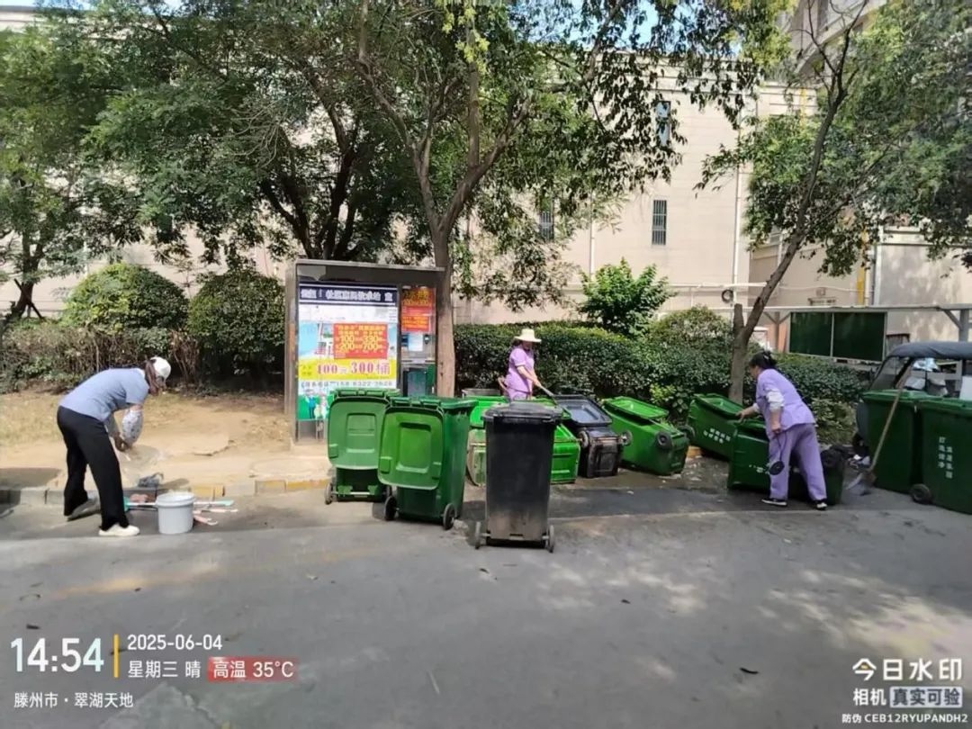 各职能部门负责人现场进行跟踪督导,翠湖天地小区物业公司组织工作人员对公共区域的楼梯扶手、墙面装饰、地面瓷砖、垃圾桶等基础设施进行清洁,楼梯杂物、卫生死角进行清理、清运。小区绿地和乔木、灌木进行了养护修剪、灌溉施肥。