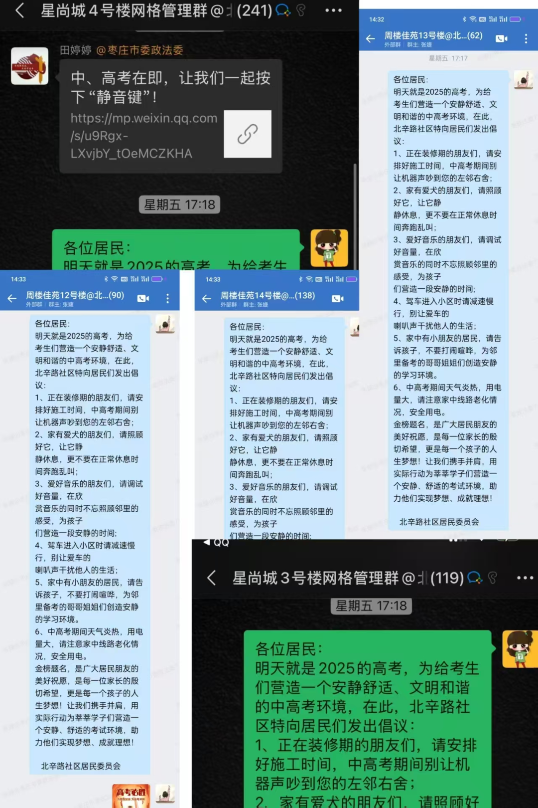 行动启动前,志愿者通过社区微信群发布《静音护考文明倡议书》,从细微处倡导文明新风:提醒养犬居民避开备考时段遛犬并及时制止犬吠,呼吁装修住户调整至非敏感时段,号召驾驶员途经考点周边自觉禁鸣喇叭。