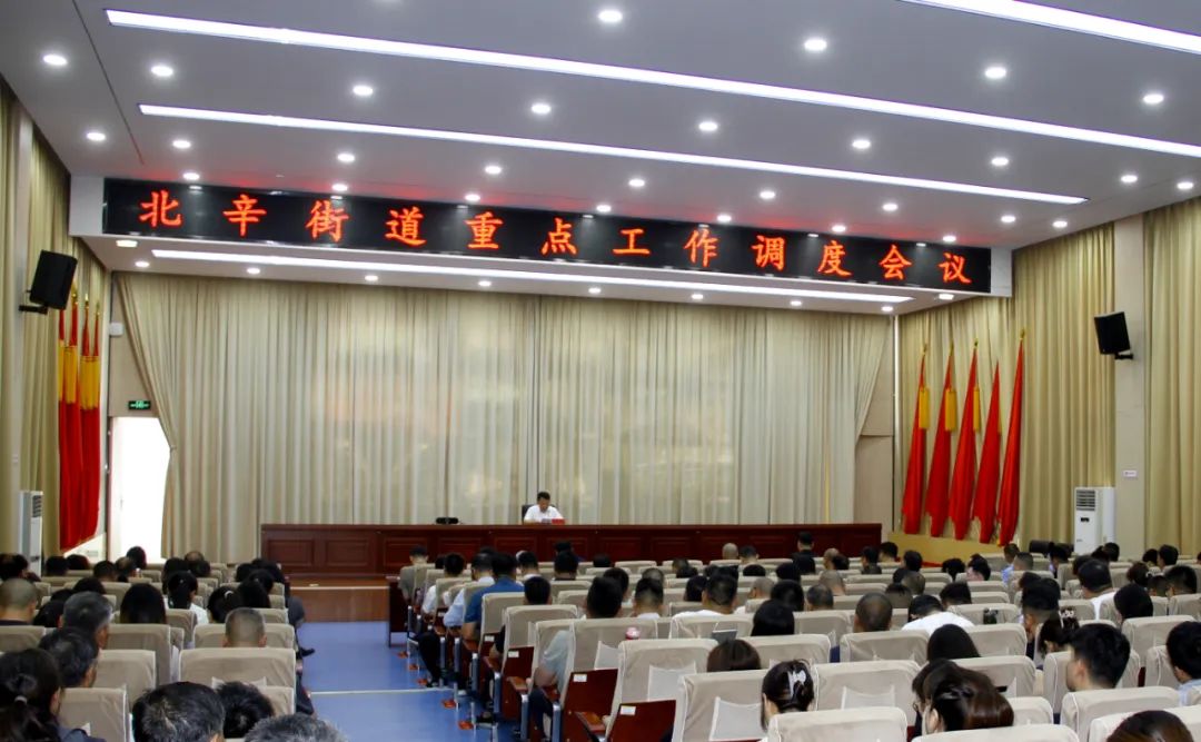 6月23日,北辛街道在东二楼报告厅召开重点工作调度会议。党工委副书记闵庆跃主持会议并讲话。街道全体领导干部,街直部门负责人,全体机关干部,各片区综合党委书记、社区党委书记,各居(网格)、股份经济联合社党支部书记参加会议。