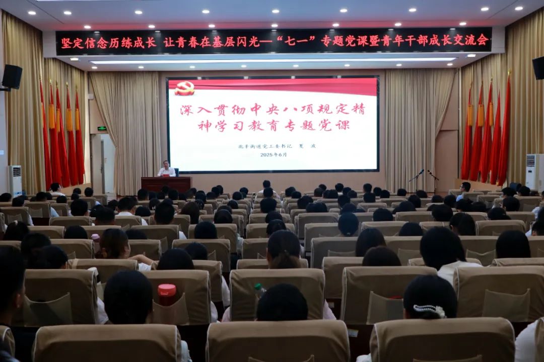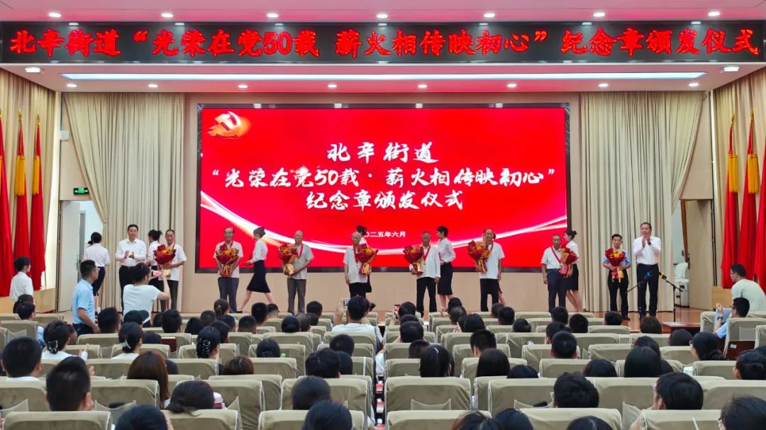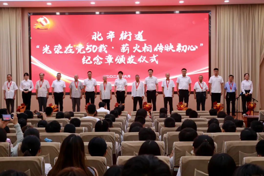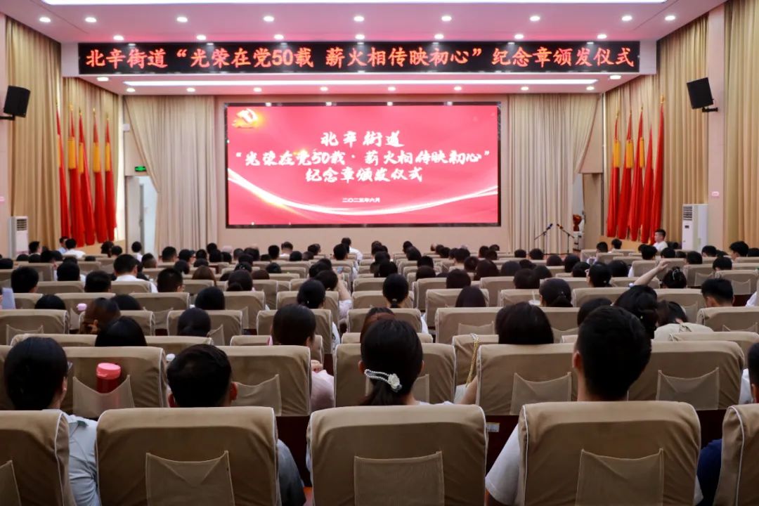 为庆祝中国共产党成立104周年,进一步增强党组织凝聚力和组织力,6月30日下午,北辛街道在东二楼报告厅举行“光荣在党50载 薪火相传映初心”纪念章颁发仪式,引导和激励广大党员干部继承和弘扬伟大的建党精神,积极投身街道高质量发展建设。街道党工委书记夏波作专题党课;党工委副书记、办事处主任孔维刚主持仪式。党工委委员、武装部部长、组织委员韩博,经济发展办公室副主任梁根,各片区、社区党委书记,部分机关干部,全体社区工作者,领取“光荣在党50年”纪念章老党员代表、新发展党员代表参加活动。
