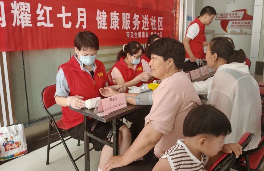 为深入推进“双报到”工作,强化党建引领社区精细化治理,近日,北辛街道奥体社区携手滕州市卫生健康局,在奥体花园小区共同举办了一场以“善城大集·情暖万家”暨“红七月·服务月”为主题的协商共驻共建项目志愿便民服务活动,为社区居民送上了一份贴心的“健康大礼包”。滕州市卫生健康局党组成员、一级主任科员颜红菊,北辛街道便民服务中心干部张葳参加活动。