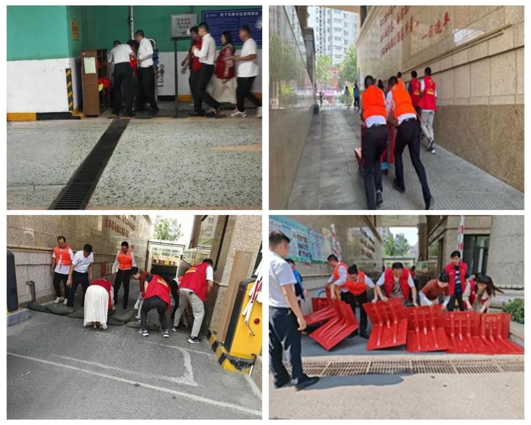 值班人员在发现雨水倒灌车库的险情后,立即通过对讲机报告。物业、居民及社区工作人员迅速赶赴现场,大家迅速穿上救生衣,默契配合,及时放下防水挡板并堆放防水沙袋,形成了一道坚固的防线,成功阻挡了雨水倒灌,最大限度减少了可能造成的损失。