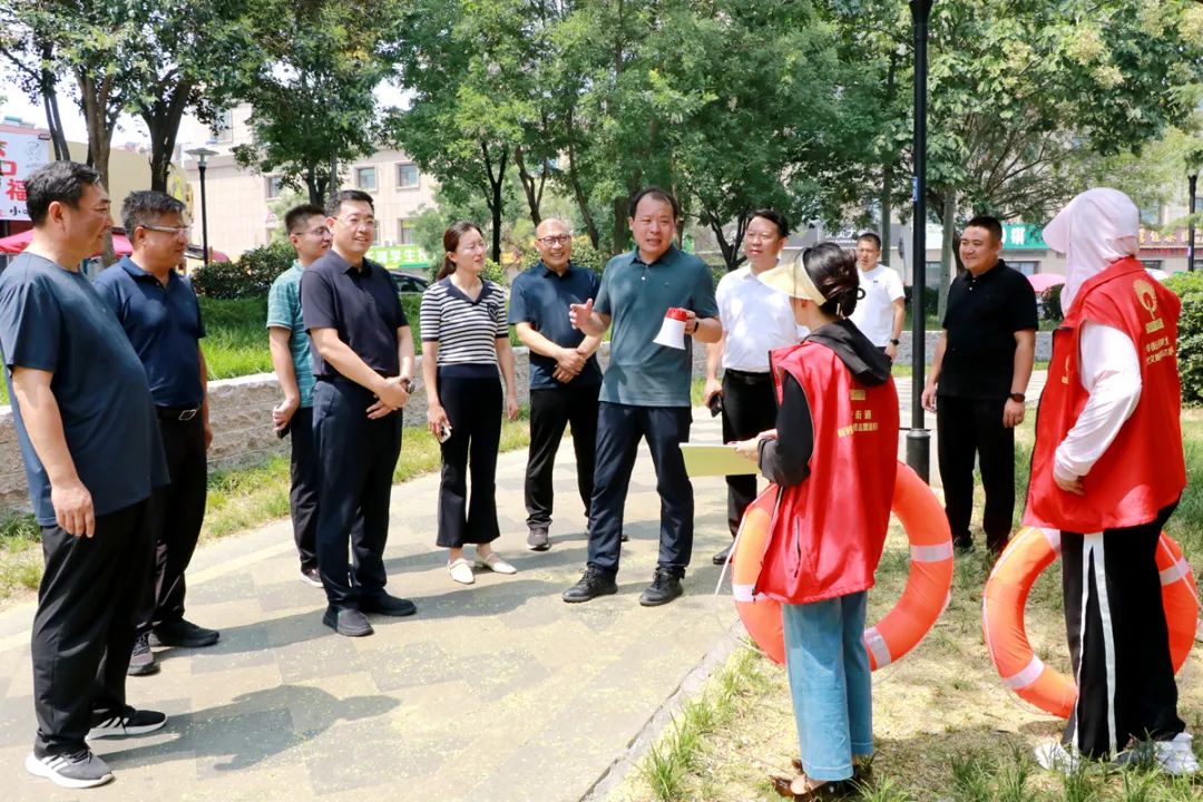 7月19日,北辛街道党工委书记夏波,党工委副书记、办事处主任孔维刚带队到辖区督导检查防溺水工作。党工委副书记闵庆跃,党工委委员、统战委员丁钢,办事处副主任刘冉冉,经济发展办公室副主任梁根,应急安全保障中心主任王艳波,相关片区、社区负责同志陪同活动。