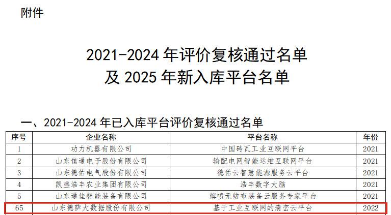 同时,山东德萨大数据股份有限公司的“基于工业互联网的清峦云平台”顺利通过省级工业互联网平台评价复核。