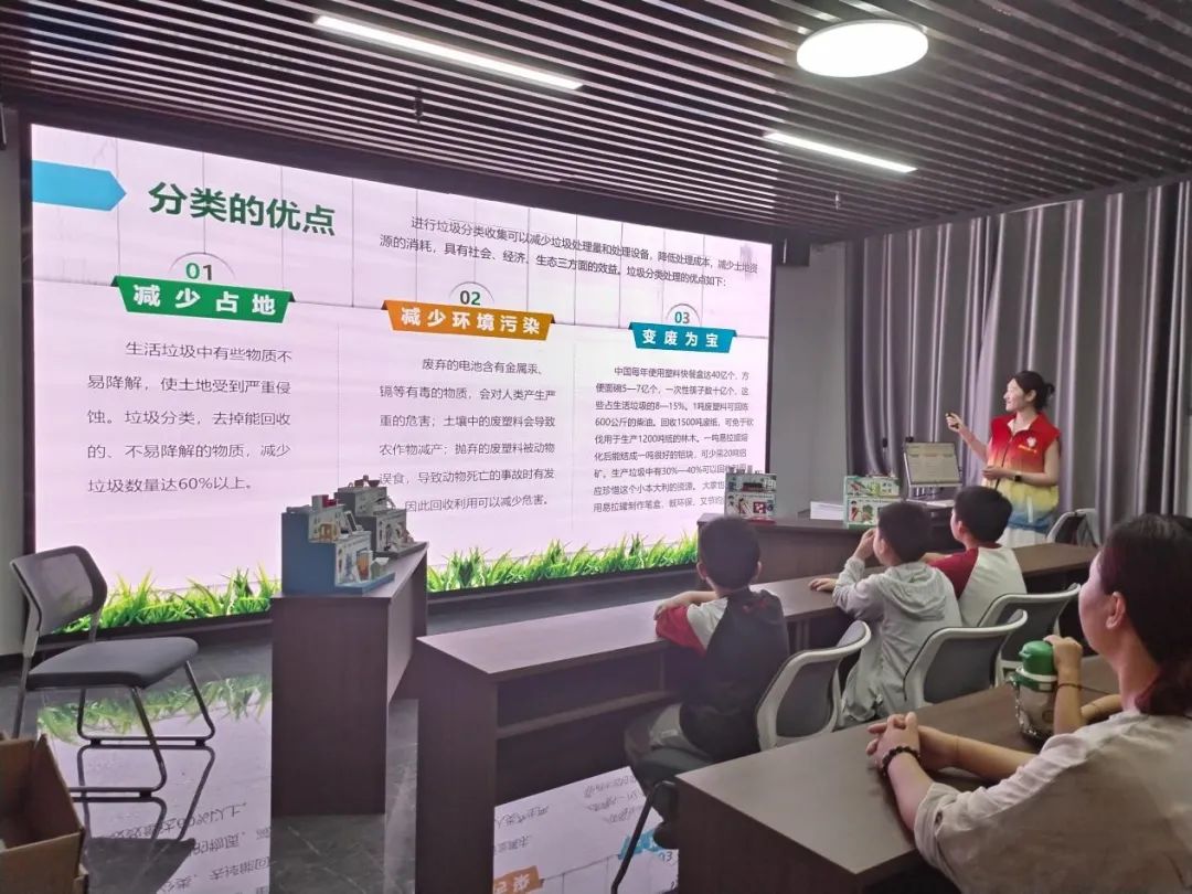 活动伊始,志愿者播放了垃圾分类卡通视频,视频以孩子们熟悉的动画形象为主角,用浅显易懂的情节讲解了生活垃圾的四大类别、不同垃圾的投放标准以及分类处理的重要意义。活泼的画面和有趣的对白吸引了在场所有孩子的目光,大家看得津津有味,时不时跟着视频里的提示小声重复分类要点。