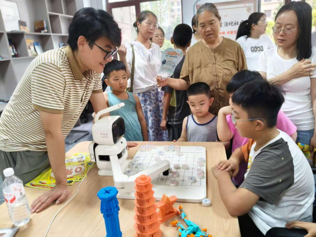 活动现场,智能机器人成为了焦点。居民们纷纷排队,与智能机器人展开紧张刺激的象棋对决。机器人精准的计算和快速的反应,让大家深刻感受到人工智能的强大魅力。乐高拼搭区里,孩子们发挥想象,用积木搭建各式造型,在动手间培养能力。
