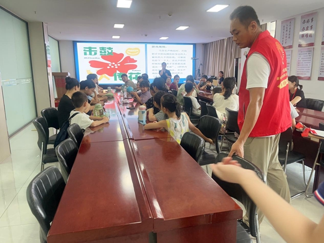 击鼓传花暖场,开启扎染之旅。活动伊始,一场热闹的“击鼓传花”游戏迅速点燃了现场氛围。音乐声响起,花束在家长和孩子们手中欢快传递,大家的心情也随着花束的移动而起伏。当音乐声戛然而止时,手持花束的参与者需要在3秒钟内说出一种与扎染有关的东西,如“白布”“染料”“皮筋”等。这个充满趣味的互动环节,不仅让大家在轻松愉快的氛围中初步了解了扎染的相关元素,还拉近了彼此之间的距离,为后续的活动开展奠定了良好的基础。