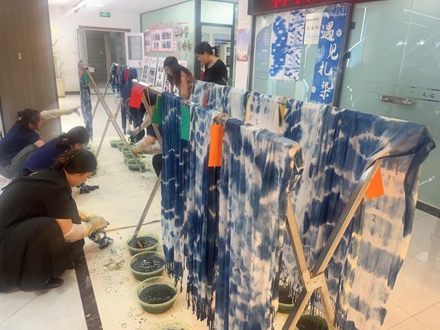 专业讲解,探寻扎染奥秘。游戏过后,志愿者老师声情并茂地为大家讲解了扎染的来源、发展历程以及制作所需的材料和工具。从古老的扎染技艺如何在历史长河中传承,到不同地区扎染风格的特色,老师的讲解生动详实,让在场的每一位参与者都对扎染这门非遗技艺有了更深入的认识。大家听得聚精会神,不时拿出手机记录下重点内容,眼神中充满了对扎染艺术的好奇和向往。