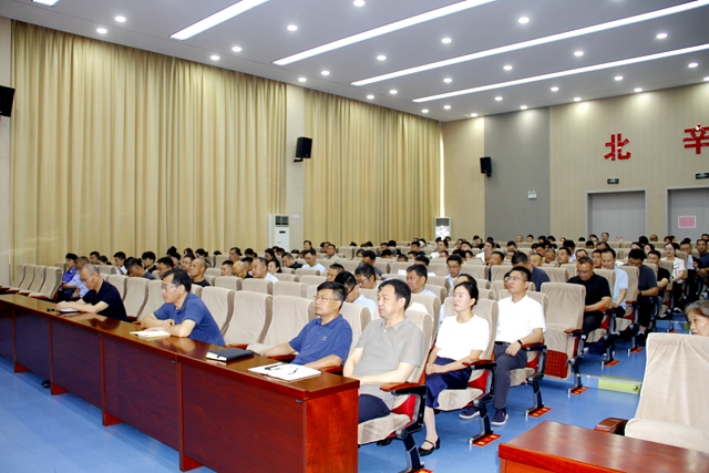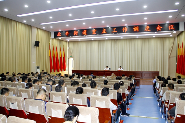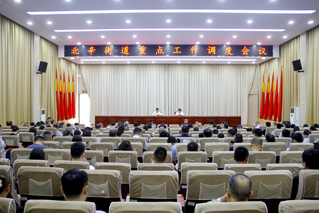8月18日,北辛街道在东二楼报告厅召开重点工作调度会议。北辛街道党工委副书记、办事处主任孔维刚讲话,党工委副书记闵庆跃主持会议。街道全体领导干部,街直部门负责人,全体机关干部,各片区综合党委书记、社区党委书记,各居(网格)、股份经济联合社党支部书记参加会议。