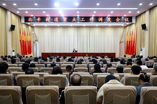 10月27日,北辛街道在东二楼报告厅召开重点工作调度会议。党工委副书记闵庆跃主持会议并讲话。街道全体领导干部,街直部门负责人,全体机关干部,各片区综合党委书记、社区党委书记,各居(网格)、股份经济联合社党支部书记参加会议。