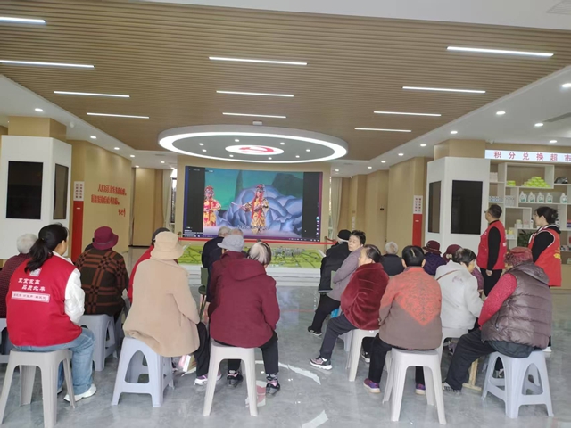 随后,活动转移至社区大厅,经典戏曲视频《劈山救母》精彩展播。熟悉的旋律、跌宕起伏的剧情透过屏幕徐徐展开,清晰的画面、醇厚的唱腔让老人们沉浸式感受戏曲魅力。大家围坐在一起,目不转睛地看着屏幕,时不时跟着节奏轻声哼唱,遇到经典桥段还会相互交流,脸上洋溢着幸福的笑容,沉浸在传统艺术的美好氛围中。