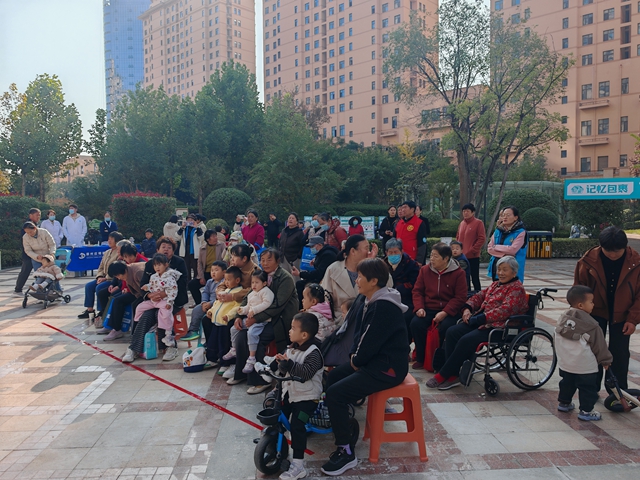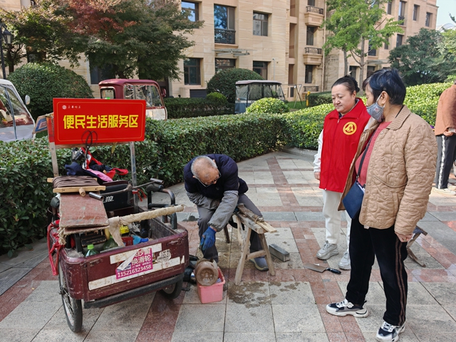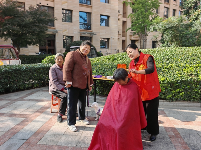 活动现场,社区广场热闹非凡、暖意盎然,戏曲旋律从始至终萦绕现场,为各项服务增添了浓厚的文化氛围。理发摊位前,志愿者们在悠扬的戏曲声中娴熟操作,耐心询问老人们的需求,细致修剪发型,让老人们在舒心体验中焕发精神面貌;“戗菜刀”这一承载着老辈人记忆的传统便民服务点位前,居民们有序排队,伴随着戏曲唱段,看着原本钝锈的刃具重焕锋利,脸上满是满意笑容;健康检测区更是备受青睐,专业的血压测量和细致的口腔检查,为老人们的健康增添了一份保障。身着统一马甲的志愿者们穿梭其间,引导秩序、搀扶老人、答疑解惑,他们的忙碌身影与现场的戏曲声、欢笑声交织在一起,构成了重阳佳节里最温馨的画面。
