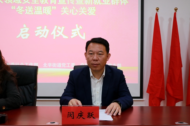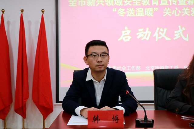 为加强新兴领域安全意识,提高新兴领域党员群众的安全感、责任感,11月7日,全市新兴领域安全教育宣传暨新就业群体“冬送温暖”关心关爱启动仪式在北辛街道举行。市委社会工作部副部长、“两新”工委副书记刘玲讲话;北辛街道党工委副书记闵庆跃致辞,党工委委员、武装部部长、组织委员韩博主持启动仪式。部分行业党委相关业务科室负责人,各镇街负责新兴领域党建工作的科室负责同志,开发区政工部相关业务科室负责人以及新就业群体代表参加活动。