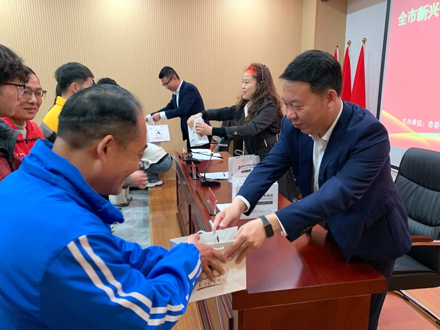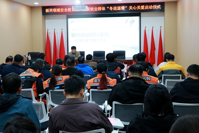 启动仪式结束后,与会领导为网约配送员、快递员、大货车司机、网络主播等新就业群体代表发放暖“新”包;滕州启明眼科医院党支部分享党建与企业融合发展的典型案例;全体与会人员共同观摩北辛街道网络主播孵化基地。