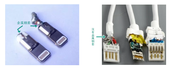 实验人员对一组充电线进行盐雾试验(一种考核产品或金属材料耐腐蚀性能的环境试验),结果显示,优质充电线外观基本无变化,劣质充电线生锈非常严重,内部触点也生出锈斑。由此可见,劣质充电线抗腐蚀性较差。充电时频繁插拔充电头,会造成插头和接口处被反复弯折。部分劣质充电线偷工减料,未在接口处使用金属钢套,导致线材赤裸裸接触接口,很容易被扯断。大家在购买充电线时,不要贪小便宜。要认准正规品牌,在挑选充电线时,可参考以下几点↓