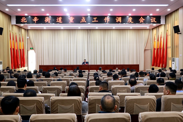 11月10日,北辛街道在东二楼报告厅召开重点工作调度会议。党工委副书记闵庆跃主持会议并讲话。街道全体领导干部,街直部门负责人,全体机关干部,各片区综合党委书记、社区党委书记,各居(网格)、股份经济联合社党支部书记参加会议。