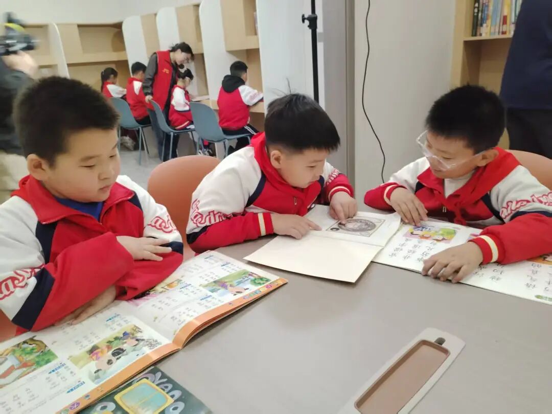 活动现场,处处是孩子们与书籍相伴的美好身影。有的围坐成圈,小手指着绘本上生动的画面,你一言我一语地分享着发现的乐趣;有的在社区志愿者温柔的陪伴下,轻声讲述着书中的奇妙故事,眼神里满是认真与向往;还有的静静独坐,沉浸在文字构筑的世界里,在墨香中感受阅读的宁静与力量。老师与社区志愿者带领孩子们共读经典绘本,用生动的语言引导大家从不同角度解读故事内涵。孩子们仿佛打开了思绪的闸门,纷纷举起小手踊跃发言,把自己的读书感悟、奇思妙想娓娓道来。稚嫩的声音、真诚的分享、热烈的互动,让整个自习室充满了欢声笑语,也让阅读的种子在交流中悄然生根发芽。