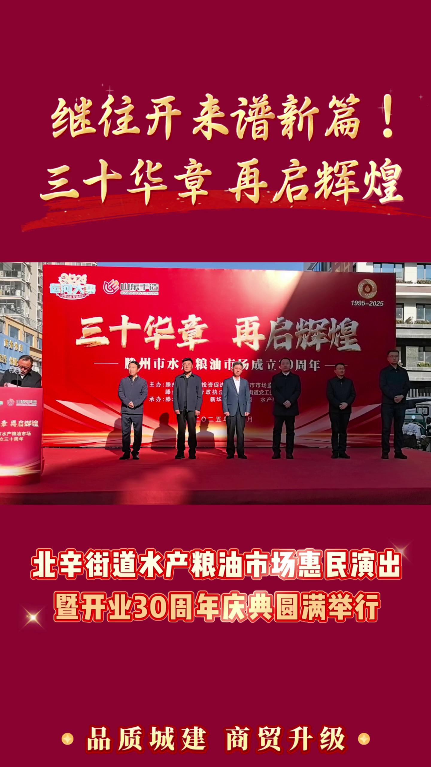 11月27日,北辛街道水产粮油市场惠民演出暨开业30周年庆典圆满举行。滕州市市场监督管理局党组书记、局长陈凡锋,滕州市商务和投资促进局党组成员、市电子商务服务中心主任张永臣,市综合行政执法局党组成员、综合行政执法大队大队长张显峰应邀出席活动;北辛街道党工委书记夏波,党工委副书记闵庆跃,党工委委员(宣传委员)孔超以及各部门负责人、片区综合党委书记、各社区党委书记和水产粮油市场商户代表及周边居民参加活动并观看演出。