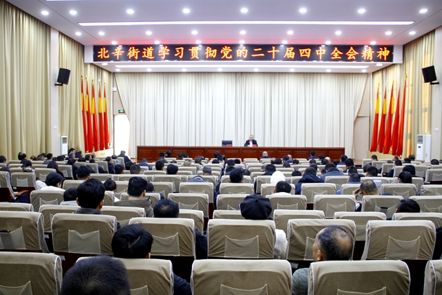 为深入学习宣传贯彻党的二十届四中全会精神,12月15日,北辛街道在东二楼报告厅开展党的二十届四中全会精神专题宣讲。街道全体领导干部,街直部门负责人,全体机关干部,各片区综合党委书记、社区党委书记,各居(网格)、股份经济联合社党支部书记参加会议。