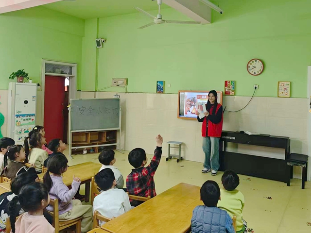 活动由社区志愿者与幼儿园老师共同主持,通过PPT从“火灾的危害”“常见的火灾隐患”“火场逃生小技巧”等方面展开讲解,重点教孩子们认识消防车、灭火器、烟雾报警器等消防器材,牢记“119”火警电话的拨打要点。孩子们积极举手回答问题,现场互动氛围十分热烈。