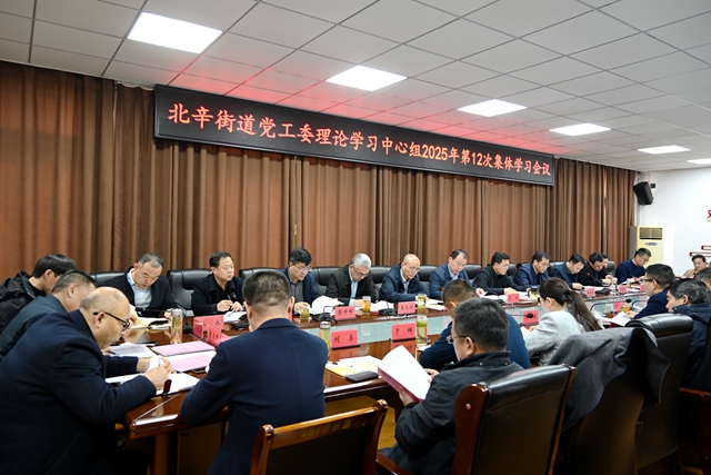 12月20日,北辛街道党工委理论学习中心组在四楼会议室召开2025年第12次集体学习会议。北辛街道党工委书记夏波主持会议并讲话。街道党工委理论学习中心组全体成员参加会议;街道其他副科级以上领导干部、各片区综合党委书记和相关工作岗负责人列席会议。