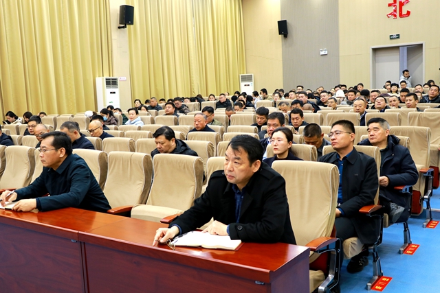 12月22日,北辛街道在东二楼报告厅召开重点工作调度会议。党工委副书记闵庆跃主持会议并讲话。街道全体领导干部,街直部门负责人,全体机关干部,各片区综合党委书记、社区党委书记,各居(网格)、股份经济联合社党支部书记参加会议。
