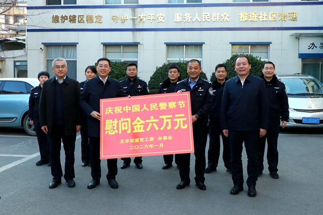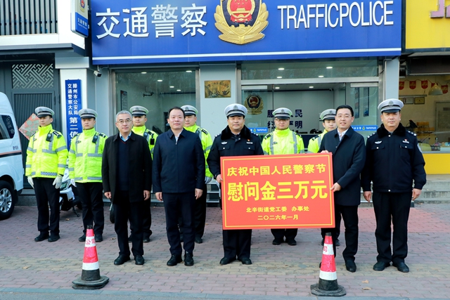 1月9日,在第六个中国人民警察节来临之际,北辛街道党工委书记夏波,党工委副书记、办事处主任孔维刚,党工委副书记吕长胜到辖区开展“中国人民警察节”走访慰问活动,向长期坚守在一线、默默守护辖区平安的基层干警致以节日的问候和最诚挚的敬意。