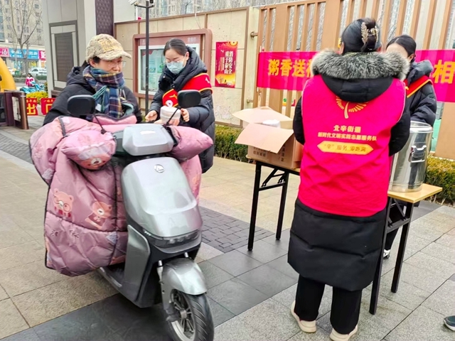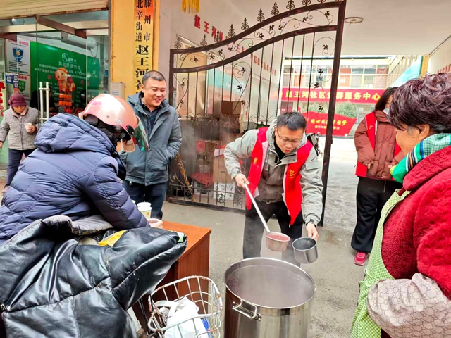 俗话说,“过了腊八就是年,一碗热粥暖心田”。为传承传统民俗,凝聚邻里力量,营造温馨的节日氛围,1月26日上午,北辛街道各社区新时代文明实践站联合物业开展腊八节送粥活动,用热气腾腾的“腊八粥”为社区居民及沿街过路人员送去冬日暖意与新年祝福。