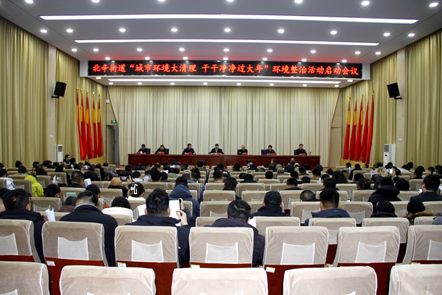 1月26日,北辛街道在东二楼报告厅召开“城市环境大清理 干干净净过大年”活动启动会议。北辛街道党工委副书记、办事处主任孔维刚讲话,党工委副书记闵庆跃主持会议,街道全体领导干部,各部门主管,部分双管单位负责人,各片区综合党委书记、社区书记,各居(网格)、股份经济联合社党支部书记,以及辖区保洁公司、物业经理参加会议。