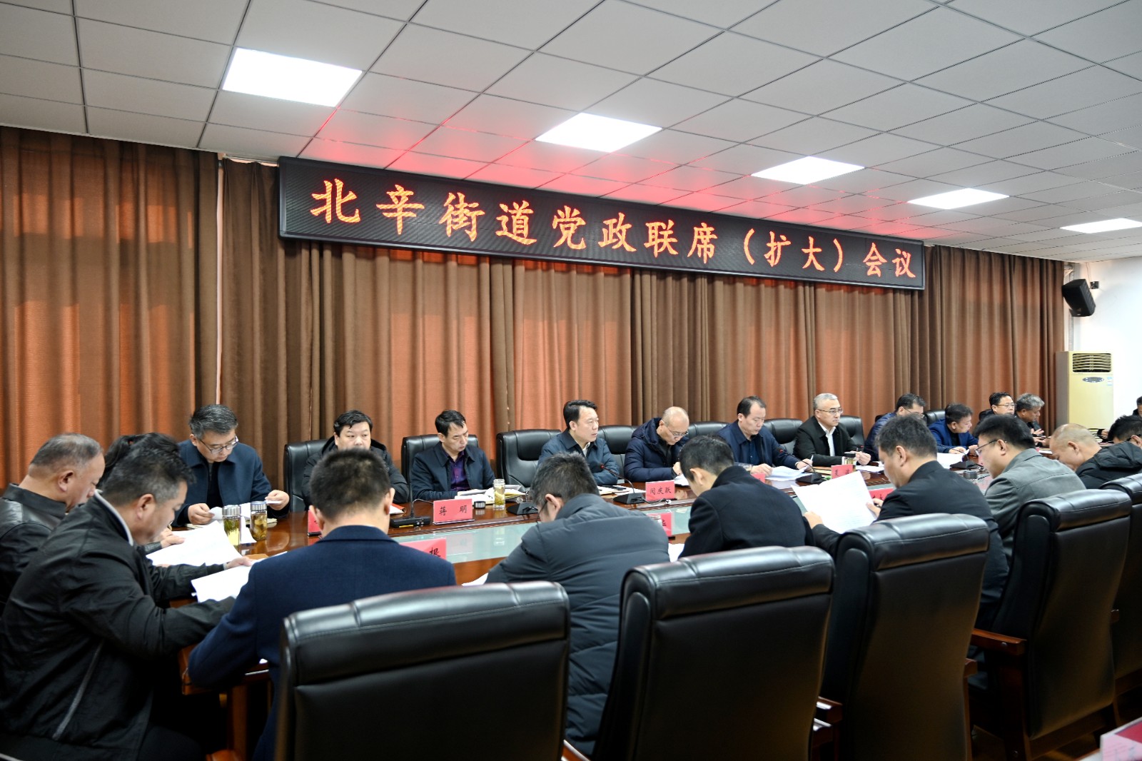 2月9日,北辛街道在东二楼报告厅召开重点工作调度会议。北辛街道党工委副书记、办事处主任吕长胜参加会议并讲话,党工委副书记闵庆跃主持会议。街道全体领导干部,街直部门负责人,全体机关干部,各片区综合党委书记、社区党委书记,各居(网格)、股份经济联合社党支部书记参加会议。