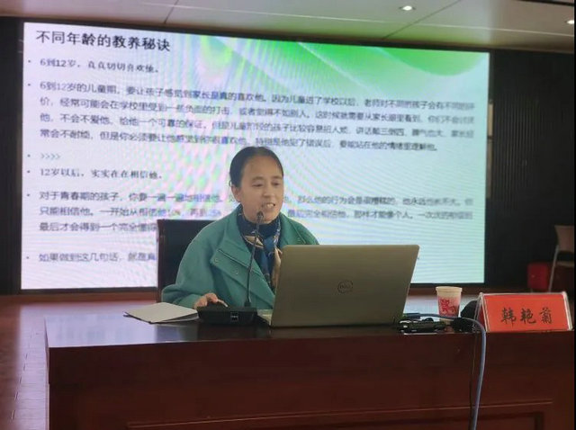 讲座中,韩艳菊老师从构建良好家庭环境、掌握科学教育方法、有效沟通的技巧等方面展开论述,用深厚的理论功底,围绕家庭教育、心理健康、情绪管理等方面内容,从心理学、教育学等角度,为家长讲授科学的教育方法。