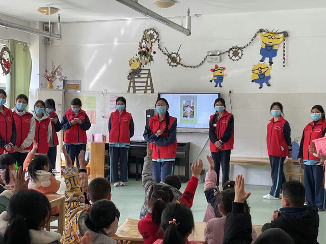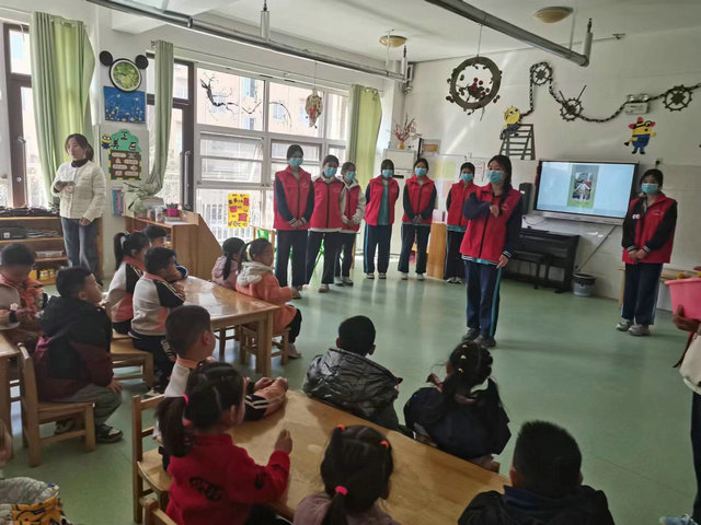 随后,教服系志愿者与在园幼儿进行《勇气大爆发》互动表演,进行“看动作猜词语和听声音辨动物”互动游戏,欢快的节奏,欢乐的笑脸,孩子们和志愿者一起欢快舞动---真正实现了与幼儿的近距离接触。活动结束后,志愿者们向幼儿园小朋友代表赠送了学习用品,春“锋”送暖,奉献爱心。
