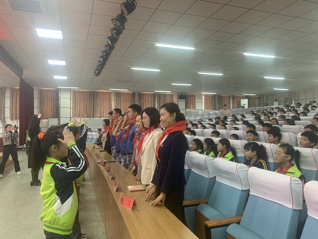 宣讲开始前,少先队员代表为领导们敬献红领巾,一条条鲜艳的红领巾承载着队员们的无限敬意。