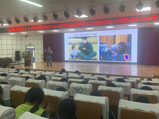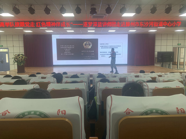 为引导少先队员厚植爱党、爱国、爱社会主义的情感,让红色基因代代传承。 4月18日,以“高举队旗跟党走,红色精神伴成长”为主题的红色宣讲活动走进东沙河街道中心小学。来自青岛“逐梦深蓝”红领巾讲师团的林风谦、苏新旺、张楠、宋嘉四位讲师为队员们带来了一场精彩的海洋国防教育活动。