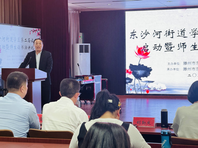 阳春三月芳菲尽,最美人间四月天。恰逢第29个世界读书日来临之际,为培养师生终身读书的习惯,全面提高师生人文素养,营造校园浓郁的读书氛围,4月19日,街道学区在东沙河小学举办第二届读书节启动暨师生读书演讲活动。出席本次活动的有街道学区领导班子,中小学校长、业务校长、教导主任,幼教中心主任、分管园长,小学教研室全体,各校教师和学生代表。