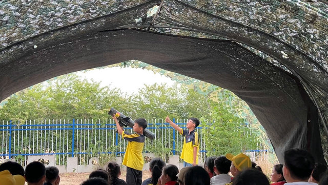 基地现场,在教官的带领下举行了盛大开营仪式,五年级级部共247人被分成六个连队。在六位教官的统一指挥下,经过奏唱国歌,授英模连旗等环节,学生对军队生活有了初步感受。同学们参观了国防科技城,鲁南人民抗日武装起义纪念馆等景观,又亲身体验对抗演练,射击演练,枪械拆解,弓箭射击等活动。课程内容丰富,同学们收获良多。