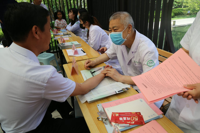 义诊现场,医务志愿者们现场为居民免费测量血压、血糖,检查身体。对一些患有疾病的群众结合多年临床工作经验,耐心询问病史、饮食和用药情况,并提出合理科学的健康指导和诊疗方案。通过科普宣传教育向群众普及日常保健和慢病防治知识,养成健康的生活习惯,让社区居民倍感温暖。